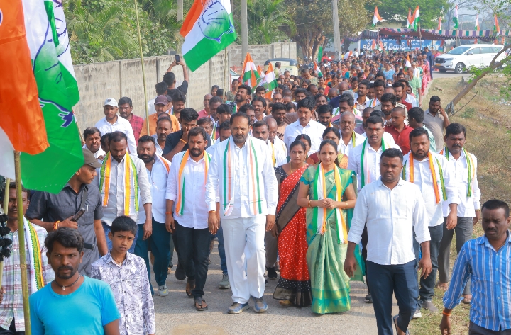 -> ఎనిమిదో వార్డులో కాంగ్రెస్ ప్రచార హోరు ..ఇంటింటా తిరుగుతూ ఓటర్లను